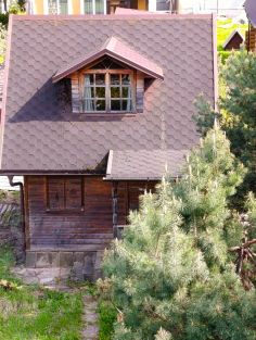 Баня : бревенчатый сруб, внутри облицован вагонкой. Очень приятное, уютное помещение. На втором этаже - жилая комната (или комната отдыха).