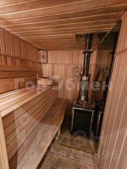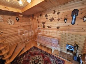 Баня с дровяной печью, просторной комнатой отдыха, и спальной на втором этаже.