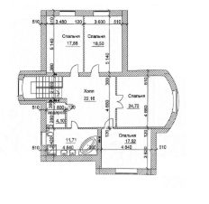 Первый этаж встречает просторной прихожей с дизайнерской лестницей на второй этаж, которая примыкает к наружной стене и по всей высоте балюстрады установлено витражное окно. Отдельного внимания заслуживает просторная гостиная с камином, современная кухня и столовая для семейных ужинов с выходом на террасу. Так же на первом этаже расположен сан\узел и бойлерная.