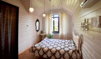 В доме на первом этаже: кухня/гостиная с выходом на участок, спальня, санузел, котельная/постирочная; на втором: мастер спальня с с/узлом и гардеробной, две спальни, санузел.