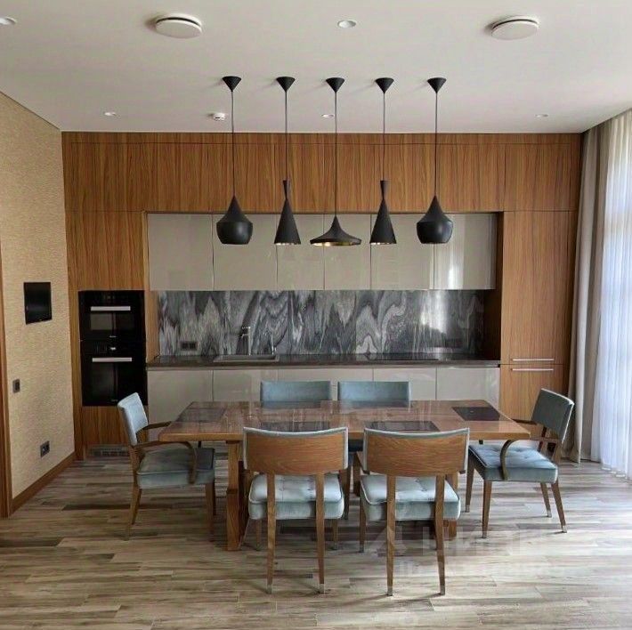 В таунхаусе площадью 265 кв. м. выполнен современный ремонт, дополненный стильной мебелью. Дом полностью готов к проживанию. По периметру участка высажены туи, которые создают ощущение приватности и украшают ландшафт.