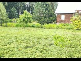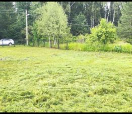 Участок у леса, электричество по границе. Участок ровный, регулярно выкашивается, почищен от старых построек. Удобно для строительства.
