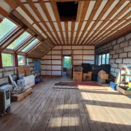 Отделка: полы - ламинат, окна пластиковые стеклопакеты, стены обшиты деревянной рейкой.