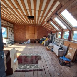 Конструкция: дом состоит из двух частей: одна часть выполнена из бруса, вторая часть выполнена из пенобетонных блоков. Весь дом облицован кирпичем. Перекрытия деревянные.