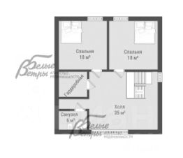 2-ой этаж: холл 35 кв.м., первая спальня 18 кв.м., вторая спальня 18 кв.м., санузел б кв.м.
