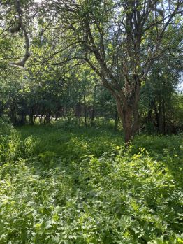 На территории участка яблони, сливы, смородина, вишня, сирень.