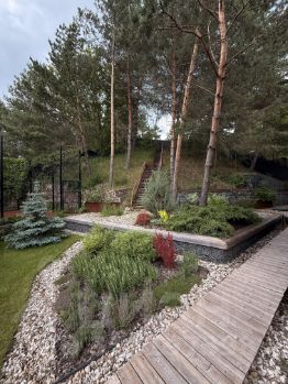 не участке посажено 8 больших елей, сделан ландшафтный дизайн.