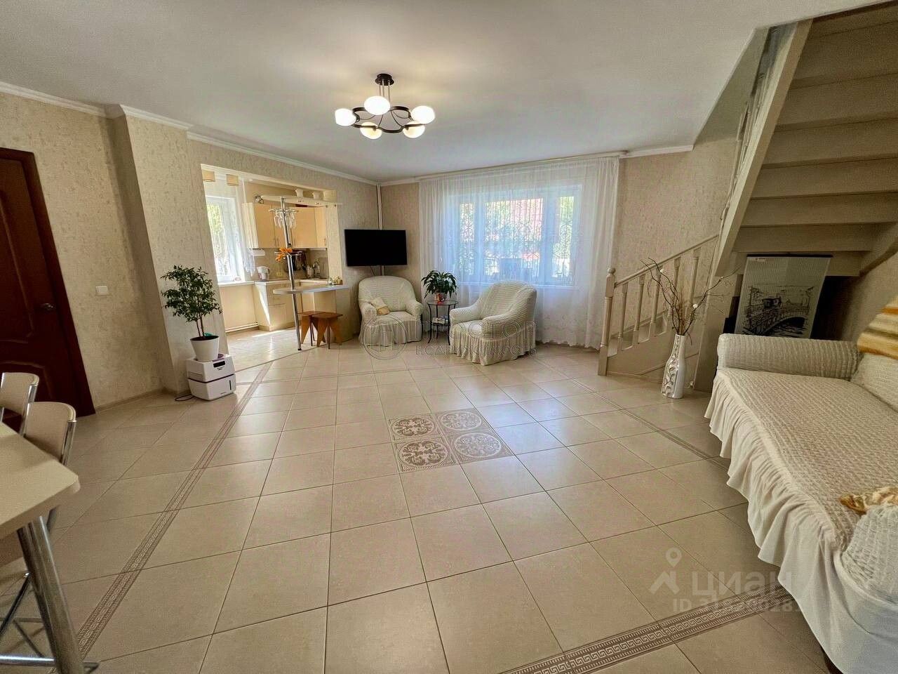 - На первом этаже просторная гостиная (33,5 кв.м) с теплым полом, кухня со всей встроенной мебелью и техникой и совмещенный с/у.
