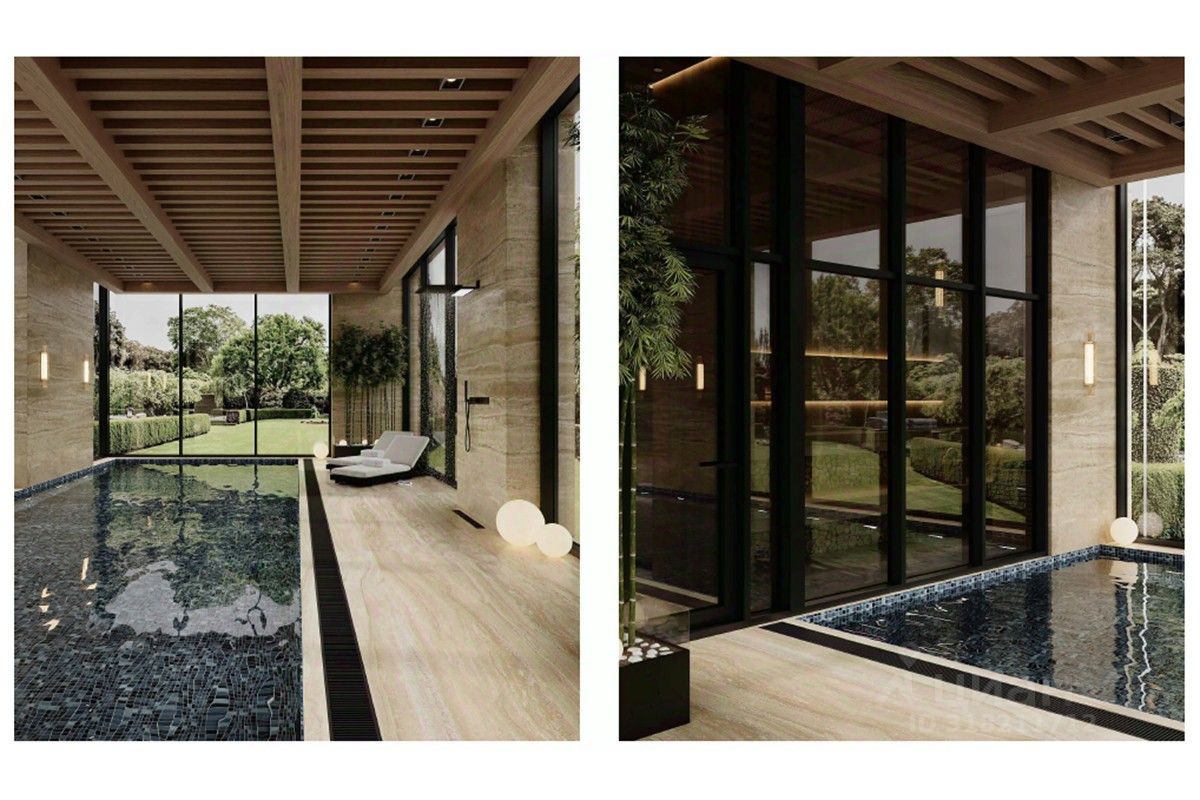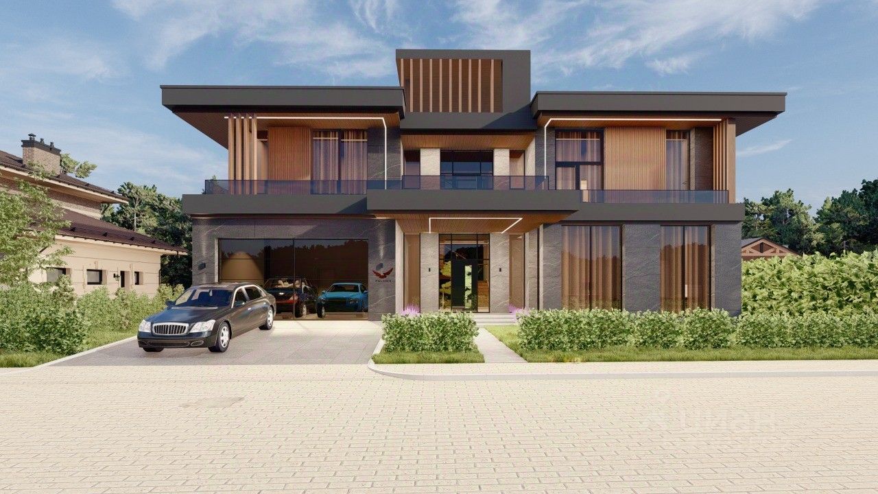 1 этаж: гараж на 2-4 машины, гостиная 69 кв.м, бассейн 10 метров , кабинет, игровая, комната отдыха, японский кедр, сауна, гардеробная, 2 санузла. Высота потолка 7 метров.