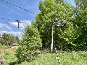 также за участком собственник сделал горнолыжный подъемник, который спускается в овраг. Дети катались на тюнинге и лыжах.