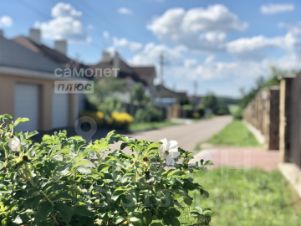 На участке детская площадка, стоит капитальный забор с фасадной стороны, посажены кустарники, нужно будет сделать ворота.