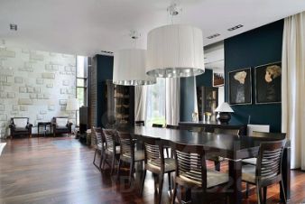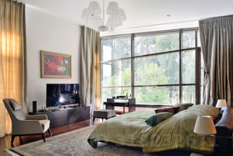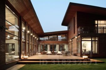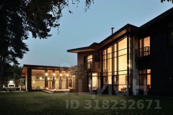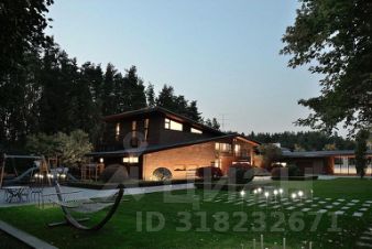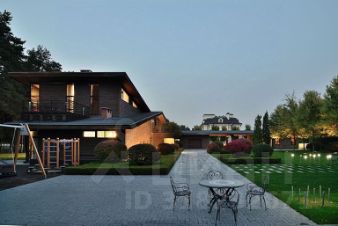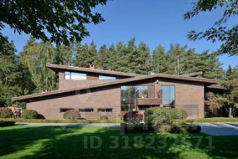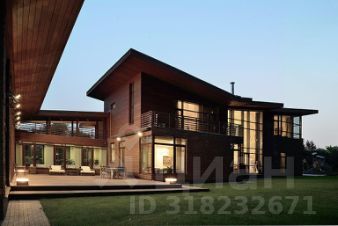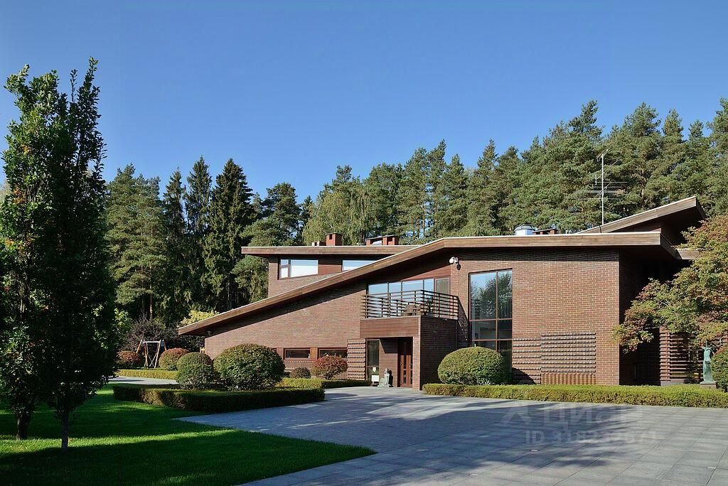 Резиденции Бенилюкс. Дом в современном стиле облицован темным деревом и кирпичом, обрамлен живой изгородью и декоративными кустарниками. Со стороны участка дом образует изгиб, где устроена зона патио для отдыха и обедов на свежем воздухе. В доме выполнена отделка в стиле итальянского минимализма с учетом всех современных трендов. Основная сдержанная гамма дополнена яркими акцентами текстиля и дизайнерским освещением. На цокольном этаже предусмотрен гараж-навес для 6 машин, винная комната в английском стиле с кожаной мебелью, бильярдная и тренажерный зал. На первом этаже внимание приковывает двухсветная просторная гостиная с камином и зона СПА с панорамным бассейном. Общая площадь дома 1254 м². Участок 198 соток обрамляет хвойный лес, на открытой территории посажен густой газон и выполнены ландшафтные работы.