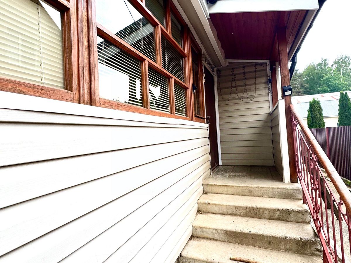 Дом одноэтажный построен из бревна лиственницы, с внешней стороны отделан сайдингом, окна - деревянные. Фундамент - лента. Кровля - металлочерепица. Погреб полноценный 3 м глубиной, отделан кирпичом, расположен в доме!