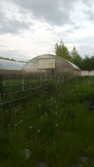 - Наличие теплиц: (две теплицы размером 11/32 метра отапливаются твердотопливным котлом)