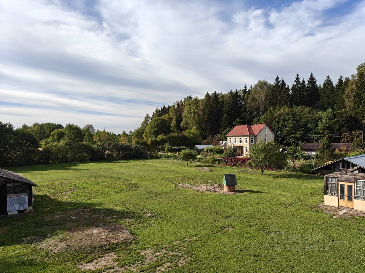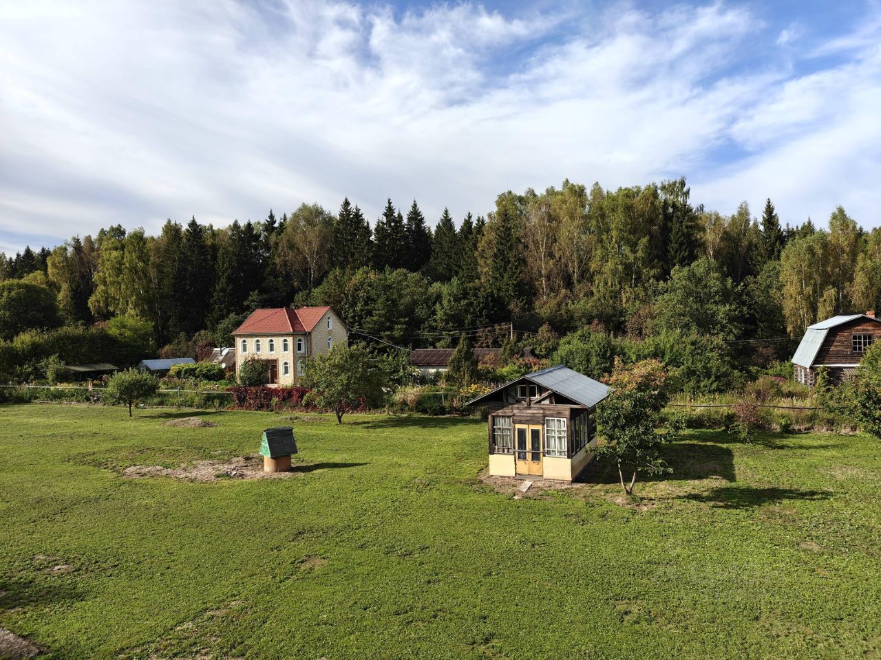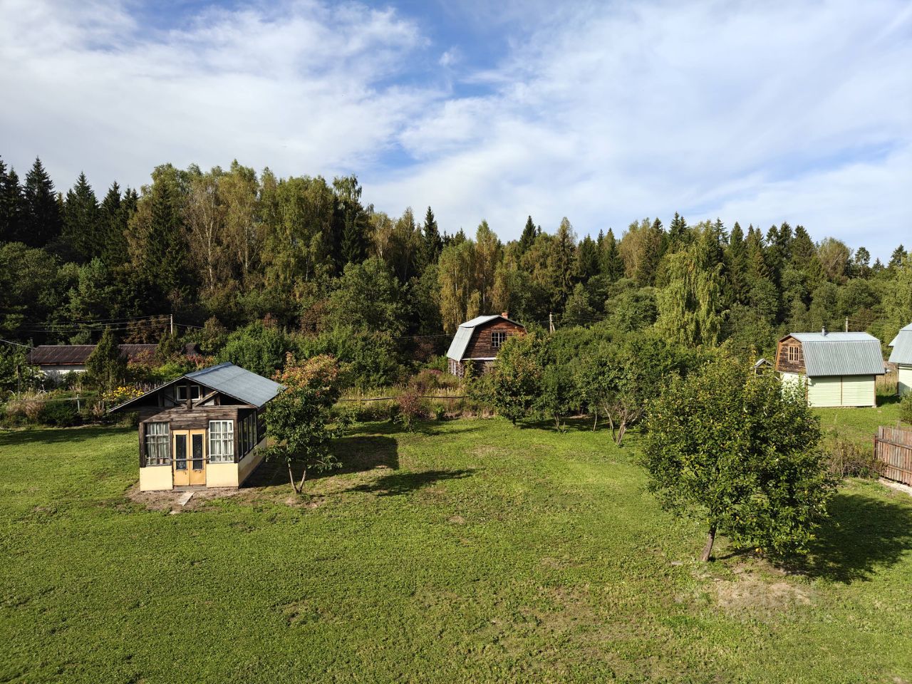 Участок угловой, соседи только с двух сторон, а густая зелень по границе создает природный защитный барьер от шума и пыли.