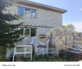Стены: газоблок 600*250*300(ширина стен 300) композитная арматура каждый третий ряд, два армопояса.