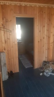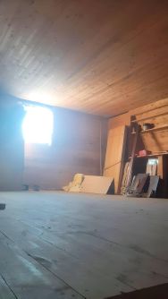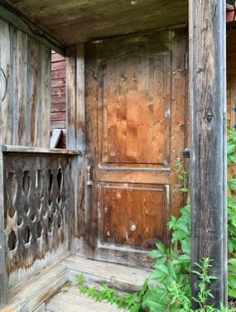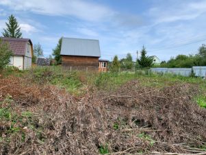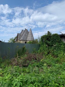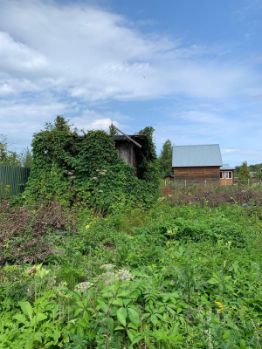 • На одном участке небольшой деревянный 2х-этажный домик (сруб, пригоден для жилья, снаружи не очень - внутри давольно добротный) и сарай (на фото под листвой)