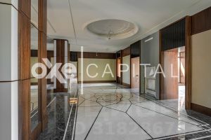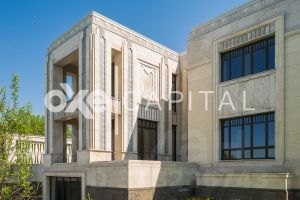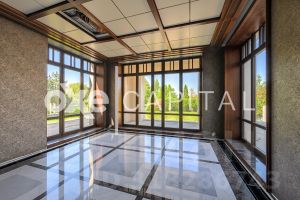 Система сбора дождевой воды подключена к общей поселковой канализации. Цоколь: бассейн (23х5 м) с выходом на улицу, хаммам, с/у, зона отдыха, прачечная, гардеробная, 2 кладовые, комната для персонала с кухней и с/у, тех.помещение, гараж на 5-6 м/м с мойкой и водостоком, электрощитовая; 1 этаж: прихожая, гардеробная, с/у, кухня, гостиная, столовая, зона барбекю, 2 каминных зала, кабинет; 2 этаж: холл, 2 детские комнаты со с/у, мастер-блок: спальня с балконом, ванная комната, 2 гардеробных; йога-студия, гостевая спальня с с/у Гараж: в контуре дома 6 м/м.