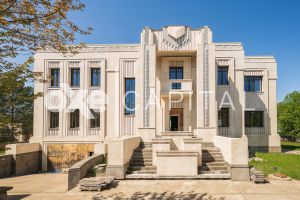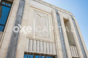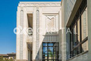 Для облицовки фасада применен натуральный известняк, а основание здания выполнено из гранита. Конструктивные особенности дома: