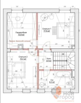 На 2-м этаже расположены две спальни, просторная гардеробная или спальня, санузел, холл.