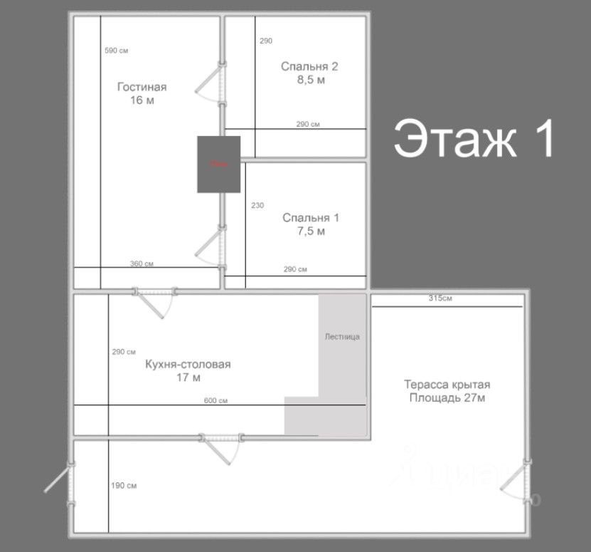 В дом заведена вода холодная и горячая. Спальня на 1 этаже планировалась к переделке на туалет.