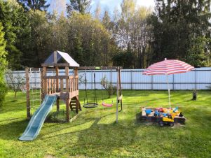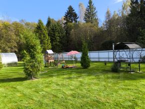 Дачный участок расположен от МКАД к Западу от Москвы, вблизи д. Амельфино, СНТ ВОРСИНКА. Добраться можно по скоростной автомагистрали М9 Балтия (Новорижское шоссе, 83 км), либо как альтернатива по Волоколамскому шоссе. Общественный транспорт (электричка, МЦД2) от Рижского/Курского вокзала до ст. Матрёнино. Участок, 14 соток, граничит с двух сторон с лесом, всего один сосед, выход в лес с участка через калитку. Территория облагорожена: газон, плодовые растения: малина, клубника, груши, яблони, черешня, 6 грядок, теплица Капелька Апельсин, бытовка, летний душ/туалет, колодец, въезд и навес для машины, детский городок, песочница, летний каркасный бассейн для ребенка.