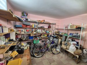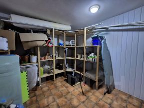 На участке ещё имеется бытовка для хранения садовой техники и инвентаря. Забор глухой из железа с кирпичными столбами.