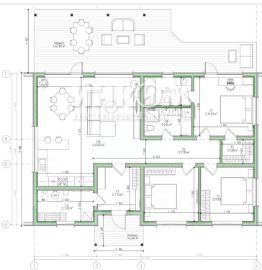 Дом имеет следующую планировку: просторная прихожая; три спальни одна их которых хозяйская и имеет собственный с/у и гардеробную; гостиная; кухня с техникой; два с/у.