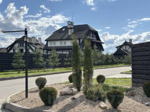 Также на участке расположен 2-х этажный гостевой дом с гаражом, площадью 169,5 кв.м. В гостевом доме выполнена отделка помещений, в нем можно уже жить пока идет ремонт в основном доме. Планировка гостевого дома состоит из: 1-й этаж отапливаемый гараж на два автомобиля, однокомнатная спальня, оборудованная кухня с плитой и вытяжкой, с/у с душевой, водный узел. Второй этаж состоит из двух спален, гардеробной, постирочной комнаты, кухня гостиная с выходом на большой балкон.