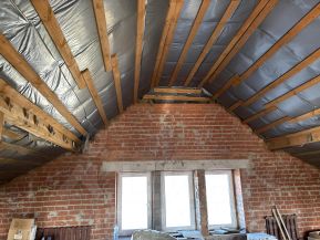 Материал стен кирпич толщиной в 65 см. Дополнительно стены утеплены 100 мм каменная вата. Дом очень теплый, все время зимой отапливается.