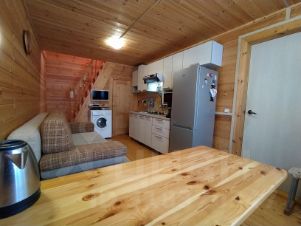 - Хоз. Блок 5х3м. утеплён и отделан вагонкой внутри и имитацией бруса снаружи. В хоз блоке имеется 2х спальная кровать и вся необходимая бытовая техника: холодильник, плита и т.д.