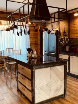 Кухня с островом (столешницы из лабрадорита, 9 м)