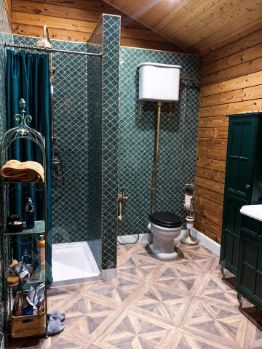 Полы: плитка под дерево (1 этаж), антикварный дуб (2 этаж)