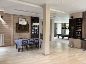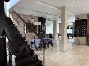 Большая гостиная с бильярдом и камином, просторная кухня с техникой MIELE, и холл с лестницей на второй этаж. Рабочий кабинет, или гостевая спальня. Прихожая с гардеробной и гостевой с/у.