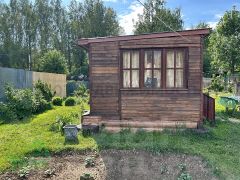 Запользованный участок: 6 соток, на нем размещены гараж (нужна ревизия), хозблок, дровник, можно ставить машины, даже играть в мини-футбол, пространство позволяет.