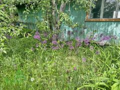 Насаждения: малина, крыжовник, черная и красная смородина, клубника, 2 яблони