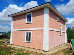Дом из блоков, на монолитном фундаменте. Деревянное перекрытие между 1 и 2 этажом (балки 100х200мм). Хорошие окна, крыша с битумной черепицей, система теплый пол на 1 этаже.