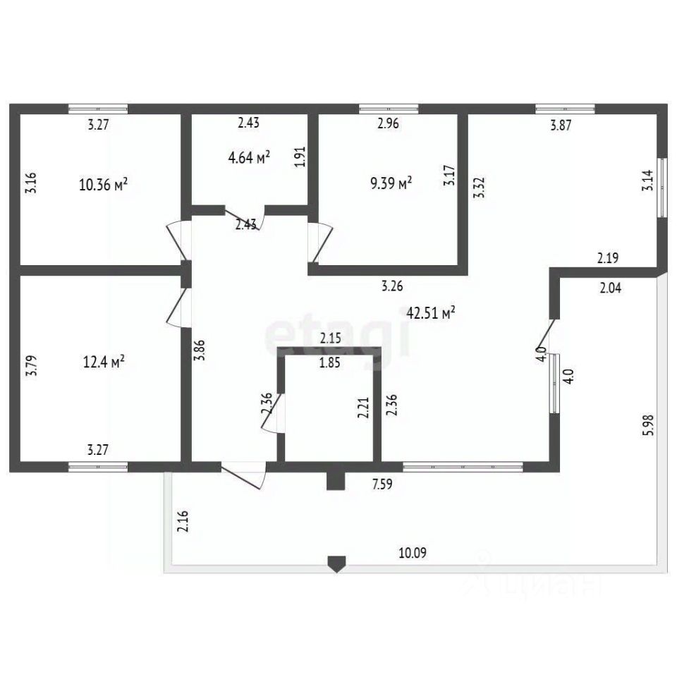 Планировка включает в себя просторную кухню - гостиную 42 кв.м, три спальные комнаты по 10, 11 и 12 кв.м., санузел, хозяйственная комната.