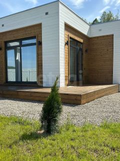 Дом - каркасный, теплый, обшит натуральным деревянным сайдингом. Построен на свайно-винтовом фундаменте. Крыша - оцинкованный металл.