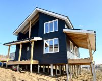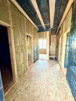 Дом полностью построен, идет внутренняя отделка лучшими экологичными материалами. Сделана разводка электрики и сантехники, отопления, теплых полов. После 10-го июня дом предстанет во всей красе.