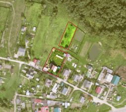 Основной участок с домом 13 соток, прямоугольной формы. Гараж с откатными воротами, навес для авто, беседка, тех. помещение из ж/б плит, дровяник, вольер и хоз-блок. Забор из профлиста, обустроены доп.ворота для с/х техники и калитка ко 2му участку. Ухоженный плодовый сад, кустарники, место для установки бассейна, детская горка, 2 теплицы, грядки.