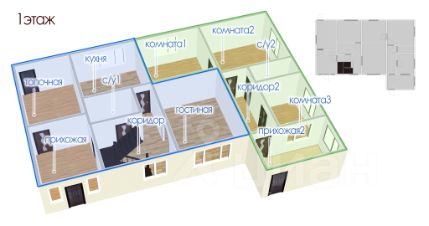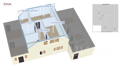 2 эт: коридор, 2 комнаты, с/у, гардеробная.