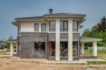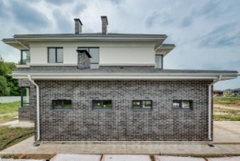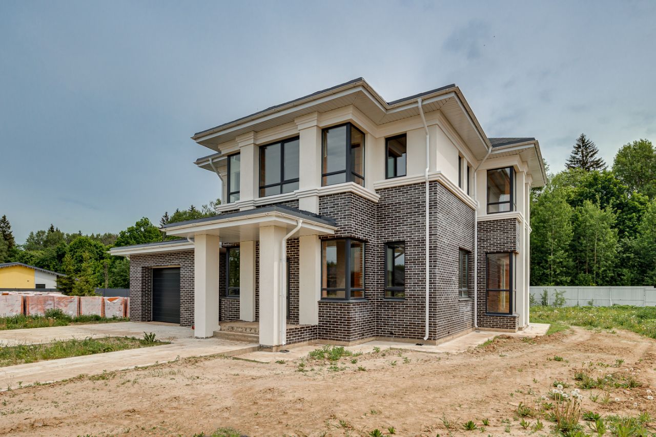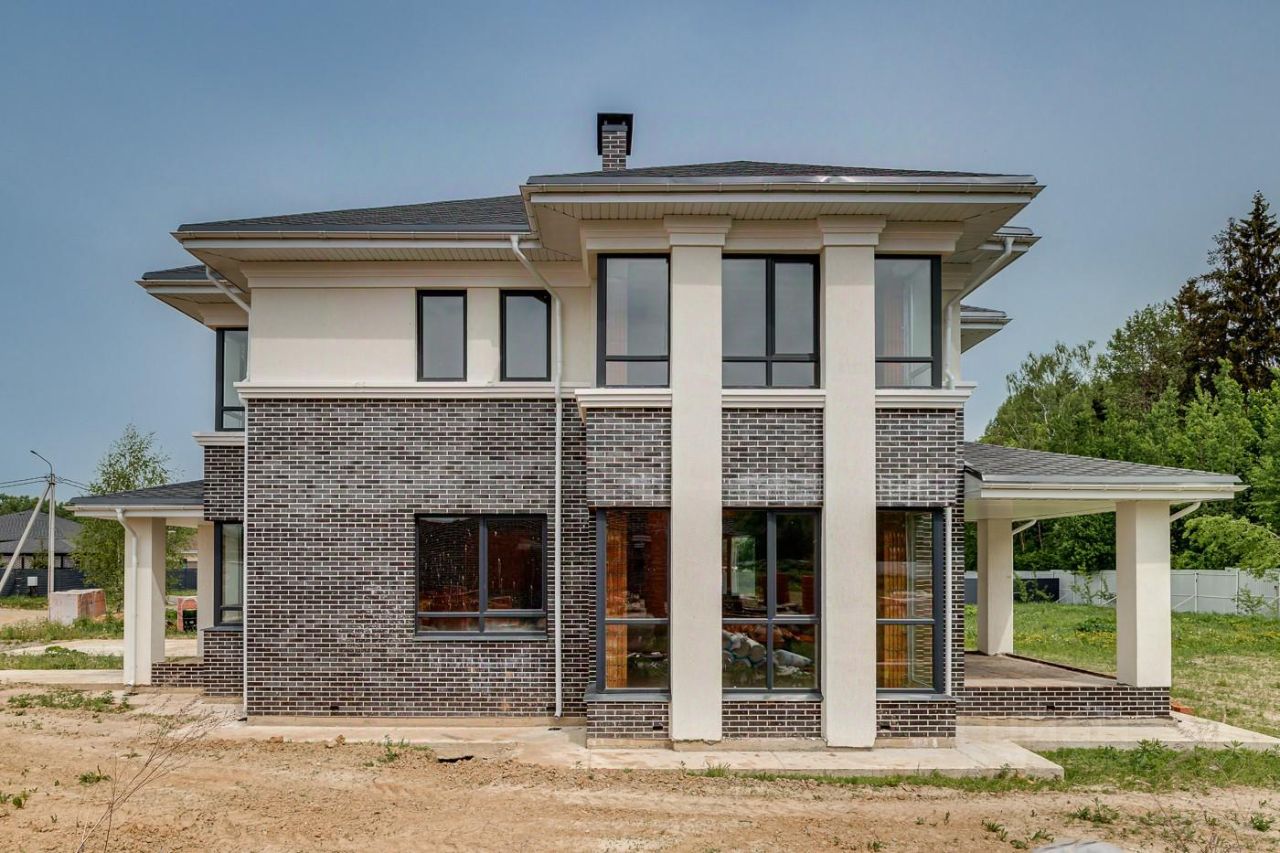 Кирпичный коттедж построен в стиле Райта, знаменитого архитектора. При строительстве использовались современные, качественные материалы: стены возведены из керамических блоков 440, перекрытия монолитные, мягкая черепица, фасадная отделка коттеджа выполнена из облицовочного кирпича. Установлены панорамные окна Rehau. Стильный и лаконичный дизайн привлекает внимание к тщательно подобранным деталям, естественности линий и внутреннему комфорту.