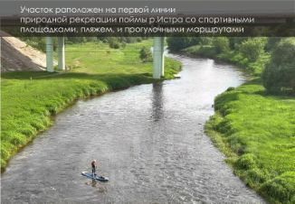 Участок сухой, правильной прямоугольной формы, круглогодичный подъезд. С участка открывается очень красивый вид на реку Истру и Церковь Благовещения Пресвятой Богородицы в Павловской Слободе.