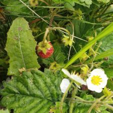 Участок освоен, есть плодово-ягодные посадки (яблони, груши, вишня, облепиха, черноплодная рябина, каштаны, сирень, шиповник, жимолость, шикарный малинник, красная и черная смородины, ежевика, ежемалина, клубника, земляника, земубика), цветники с ирисами, пионами и гортензией.