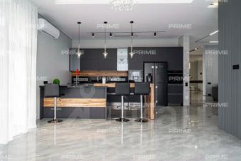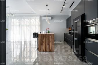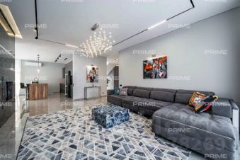 1-й этаж: Просторный и светлый холл 35 кв.м., Гардероб 5,6 кв.м, Кухня-столовая с панорамным остеклением и выходом на летнюю террасу 30 кв. м. На кухне установлена новая мебель с функциональным островом от студии "Giulia Novars" с бытовой техникой Kuppersbusch и LIEBHERR, каменная и шпонированная столешница. Гостиная с дровяным камином 31 кв. м., с/у 3,7 кв.м, Бойлерная 7 кв. м., Кладовая 6,4 кв.м., Гараж теплый на 2 а/м 45,6 кв. м.