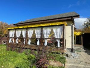 В первом доме 233 кв.м. сделан дизайнерский ремонт, дом построен из испанский блоков Tecolit, окна двухкамерные стеклопакеты. Все коммуникации подключены: газ, центральное водоснабжение, локальная канализация - септик, электричество 15 кВт, также подключен высокоскоростной интернет.
