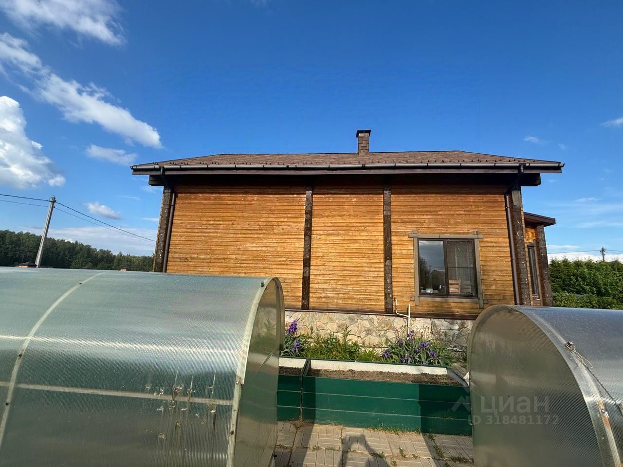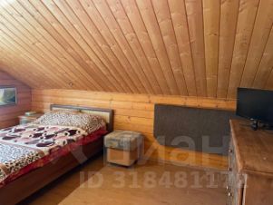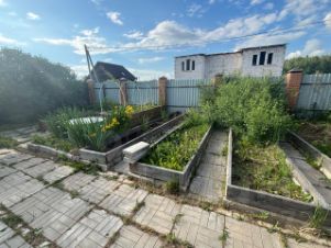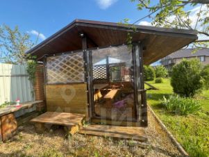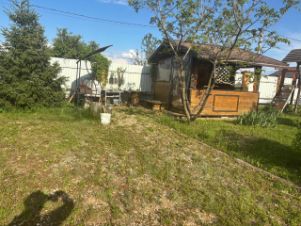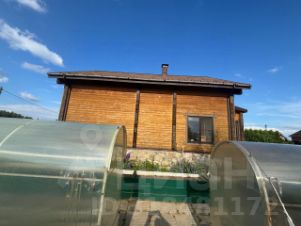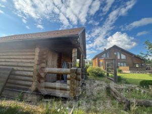 На участке также гостевой дом. Недостроен. Бревно. Можно сделать баню. Под крышей. Застеклен второй этаж.