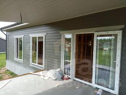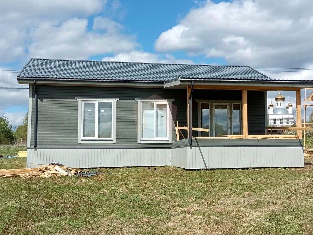 - Крытое крыльцо обеспечивает удобный вход в дом даже в непогоду.