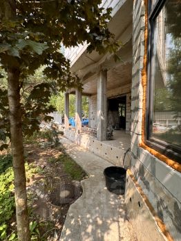 Также установлен армированный фундамент под веранду, открытую кухню, баню и мастерскую, с возможностью установки второго этажа.